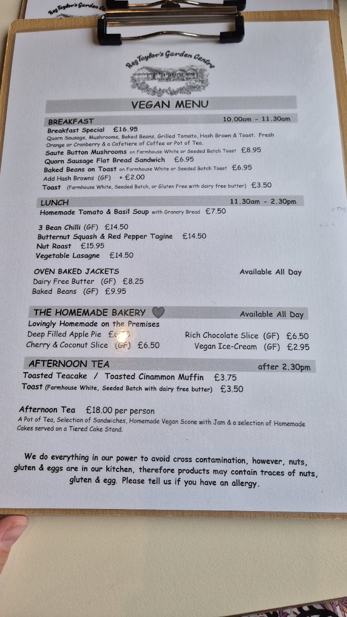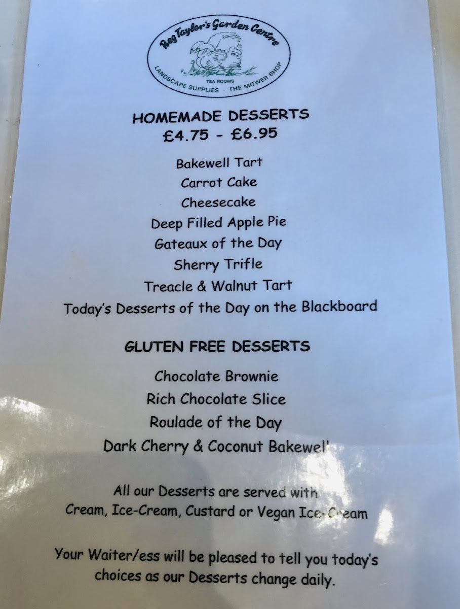 Reg Taylor's Tea Rooms Menu